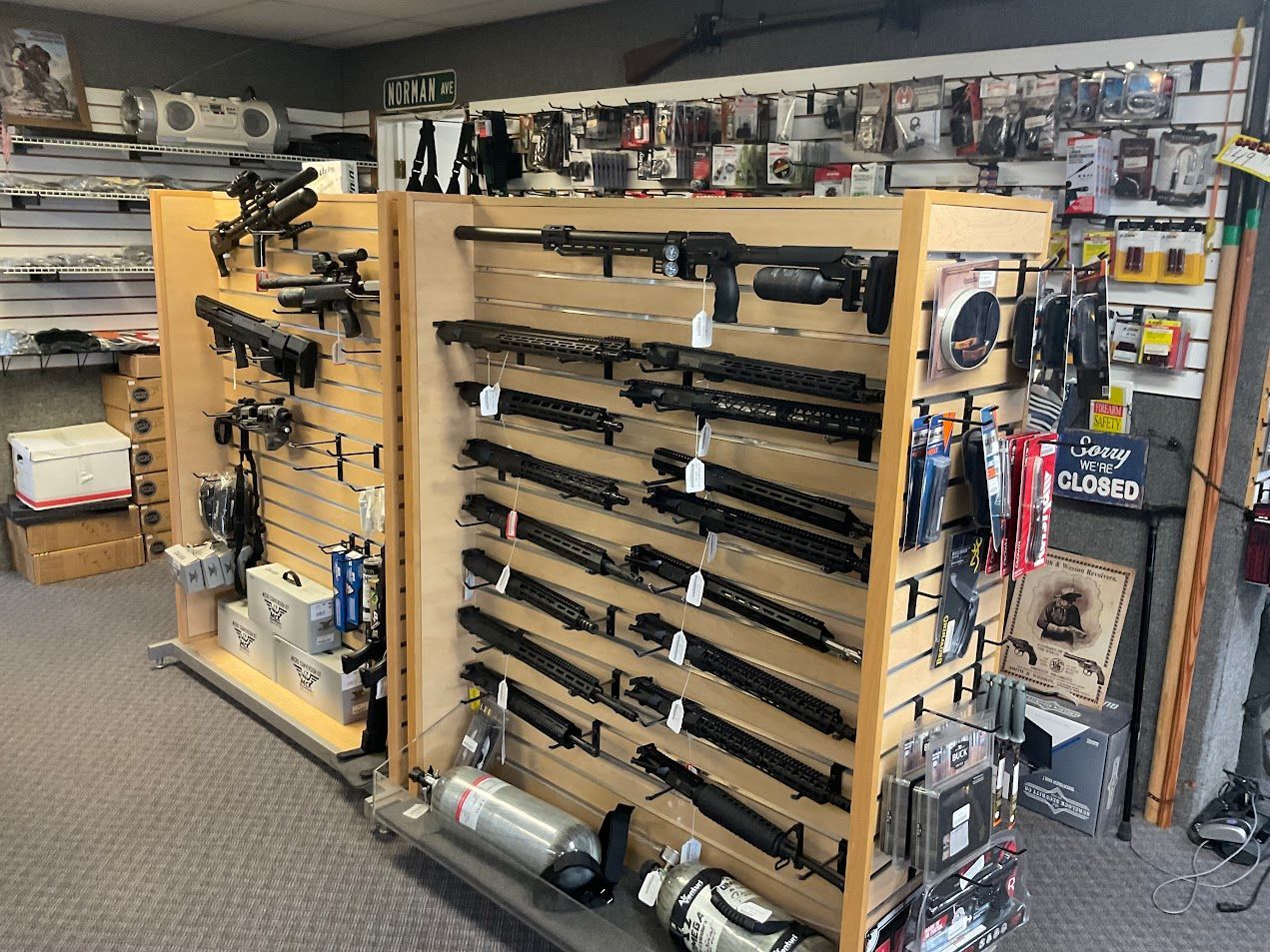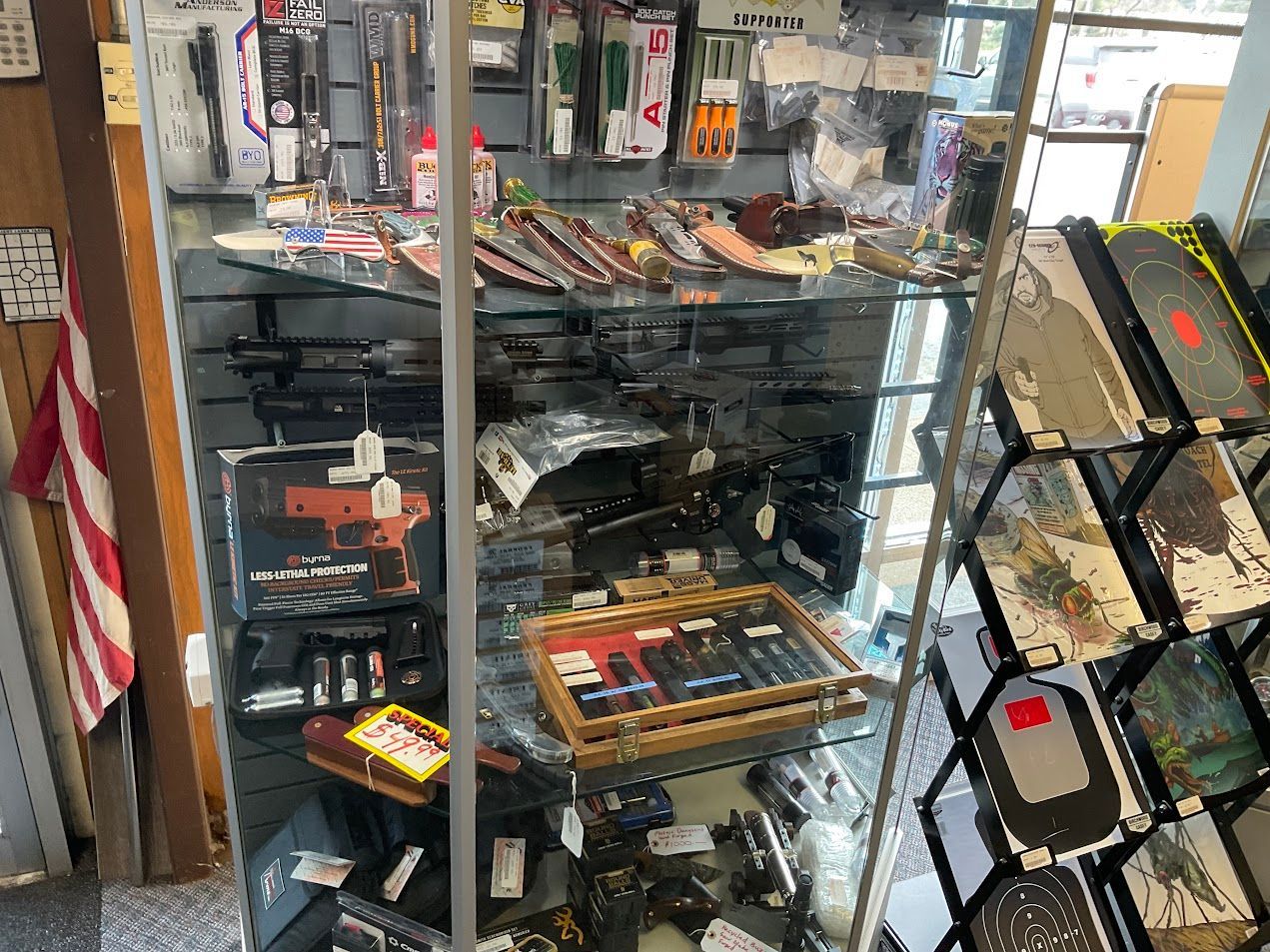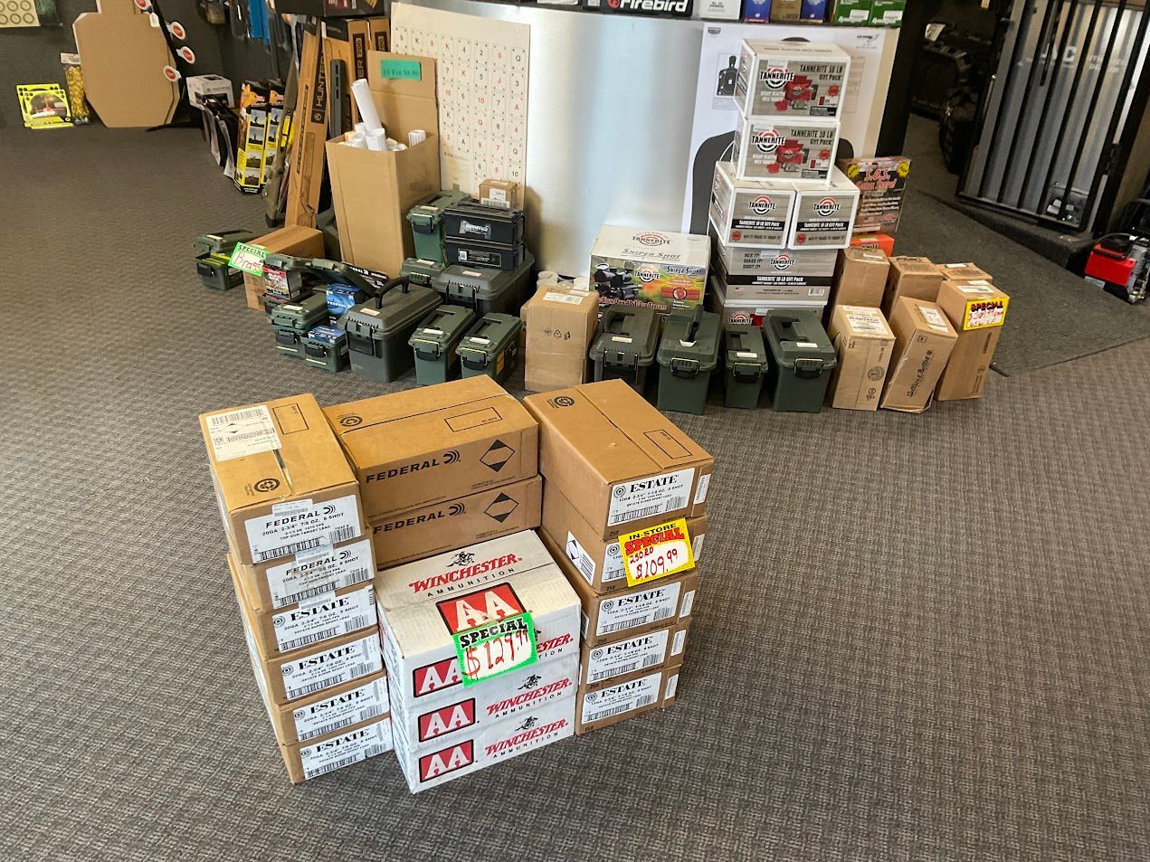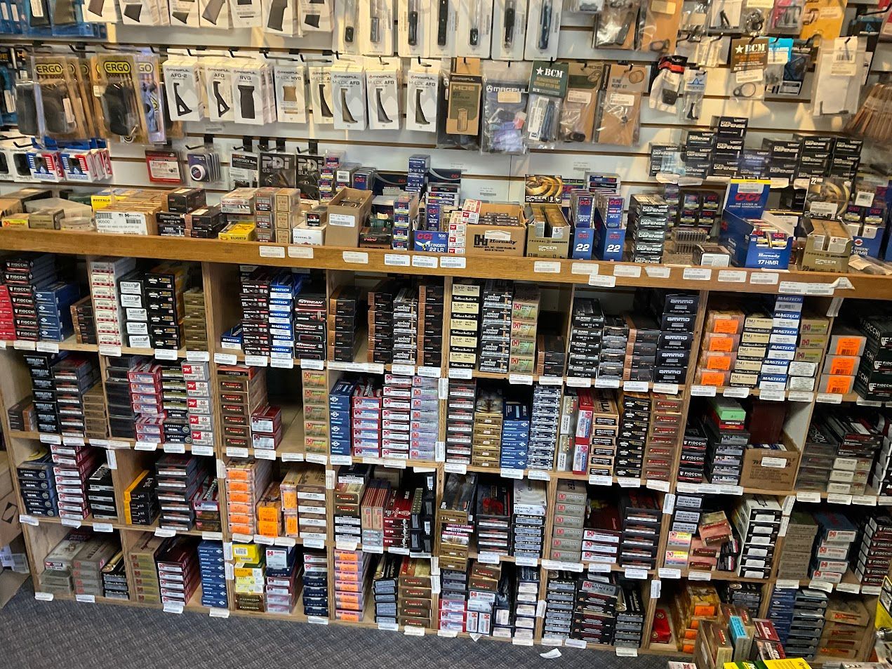 Ammunition with a specialization in oddball ammo, PCP airguns and accessories, AR parts, firearm accessories, holsters, handgun sights, electronic sights, night vision and thermal imaging, gun cases, magazines, targets, cleaning supplies, safety equipment, targets, tannerite, flashlights, and knives